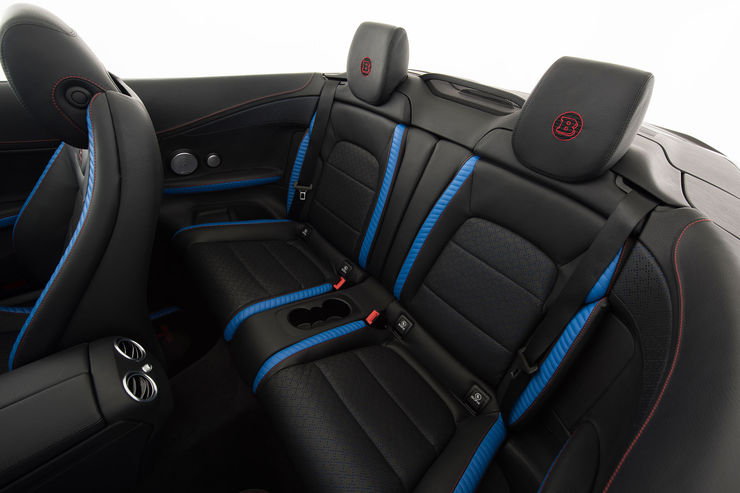 La interior, Brabus expune o tapițerie din piele și elemente decorative albastre. Acestea sunt completate de prezența elementelor suplimentare din carbon, dar și de a pedalelor și încuietorilor din aluminium. Acest Cabrio Brabus este disponibil ca vehicul complet sau poate fi construit pas cu pas, pe baza oricărui Mercedes C 63 S Cabrio.