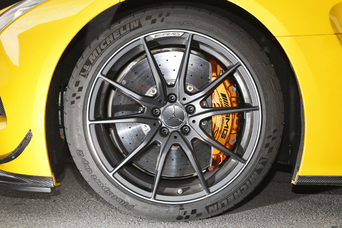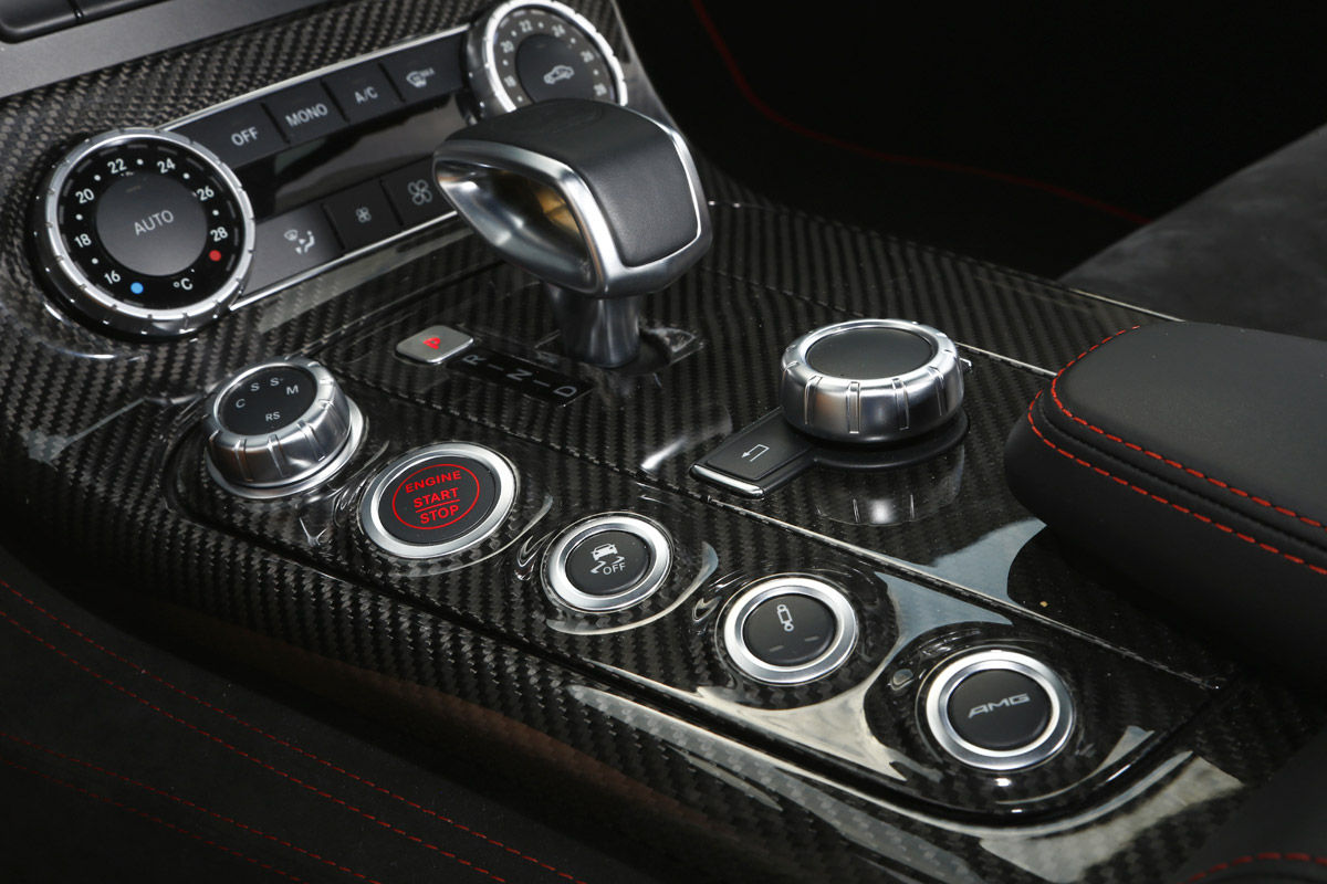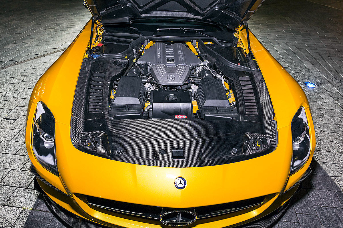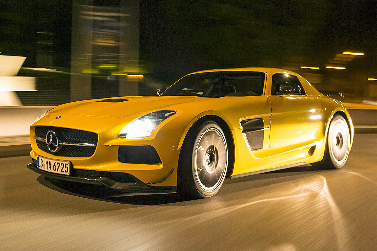 O mașină extreme pentru circuit a fost și cel mai recent erou AMG Black Series: SLS. Ca Black Series, supercarul s-a reinventat sub forma unei mașini sport perfecte. Pentru încă o dată, AMG a pus și mai multă putere în motorul V8 de 6,3 litri. Cele cinci pistoane de dimensiunea pumnului urcau până la 8.000 rpm, expediind cuplul uriaș de 635 Nm și puterea de 631 CP către roțile din spate, cu ajutorul diferențialului activ autoblocant pentru puntea din spate. Sistemul de evacuare construit din titaniu nu numai că reducea greutatea cu 13 kilograme, dar și producea o frecvență audio înaltă în stilul notelor dure din Nascar. Din punct de vedere al șasiului și al înfățișării, putea la fel de bine să se înscrie, în premieră, la o cursă de anduranță. Peste tot numai aripi, flapsuri și eleroane, plus spoilere și praguri, un măcel vizual complet. Ce gen de măcel? Unul creat de un lunetist cu armă automată. Incredibilă este însă, nu numai precizia cu care SLS taie virajele sau forța extraordinară cu care se propulsează, ci senzația de suplețe pe care o dă SLS-ul atunci când este condus la limită, aceasta fiind raportată la modul în care arată, de fapt. Crescut peste măsură, V8-ul se comportă complet dezinhibat în întreaga arie de viteze, se arunca de la 7000 rpm ca un motor de curse… Poate fi oprit doar cu ajutorul unor frâne ceramice rezistente. Puntea față ultra comunicativă, direcția exactă și nivelul de aderență, toate țintesc spre inconștiență… SLS este o creatură primitivă, barbară, care se bucură dînd din coadă la ieșirea din viraje. Dar asta este, într-un fel, esența Black Series: toate mașinile trebuie să danseze un pic înainte de a-și arăta adevărata putere și abilitate.